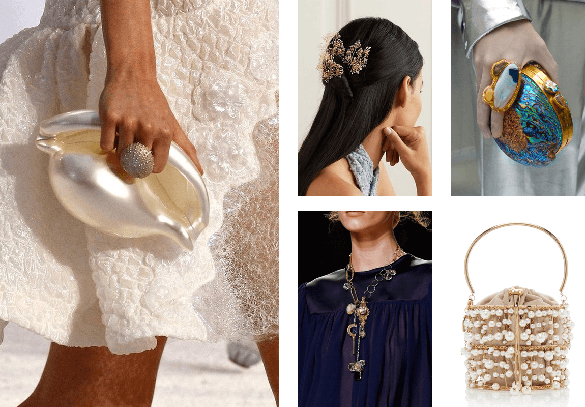 For accessories this means materials from the earth that are rare and iridescent - such as pearls (but in their natural shape) and diamonds.